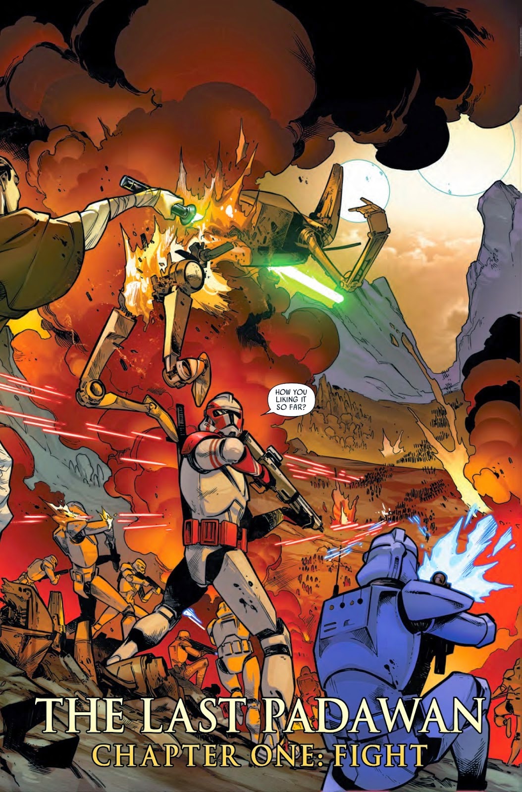 Mira que lo sabia, en Rebels no sabe coge el sable de luz y en los comics hace piruetas para matar a los droides… no pue ser¡¡¡
