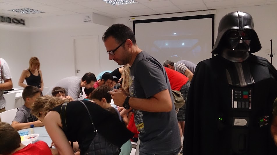 Bueno chicos, me pareció una pasada la organización del evento. Me lo pasé en grande viendo los cortos, algunos no los había visto. Mi hijo jugó mucho en la zona de niños y se lo pasó genial huyendo de darth Vader 😀