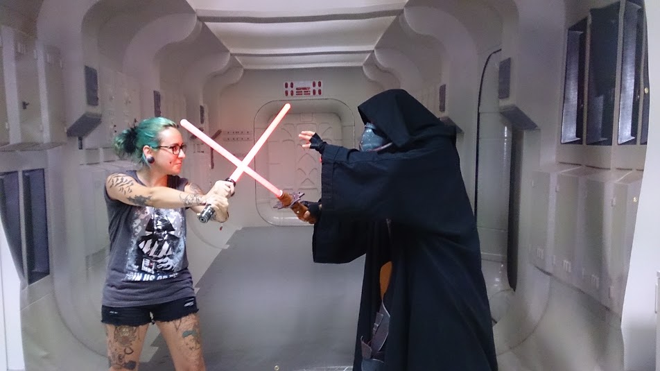 Sarah, una adepta al Lado Oscuro que conocimos en el evento, se enfrenta al temible Lord del Sith. |