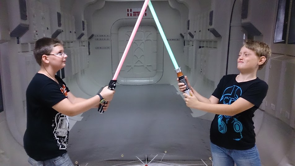 La sala contigua la presidía nuestro espectacular photocall que como ya habeis visto transportaba a los visitantes al pasillo de la nave espacial de la Princesa Leia. Allí Marco asistía a los visitantes para que Mariluz les hiciera las fotos que estos días podréis ver invadiendo las redes sociales. Allí estuvieron los grandes héroes de la mañana, el grupo de voluntarios formados por miembros de la asociación Saga Skywalker ataviados con sus propios uniformes de la saga, desafiando las temperaturas extremas que tenían que sufrir dentro de los trajes. No solo se hicieron fotografías con todo aquel que se les acercó, además jugaron y bromeaban con niños y adultos, sable de luz en mano, durante toda la mañana.