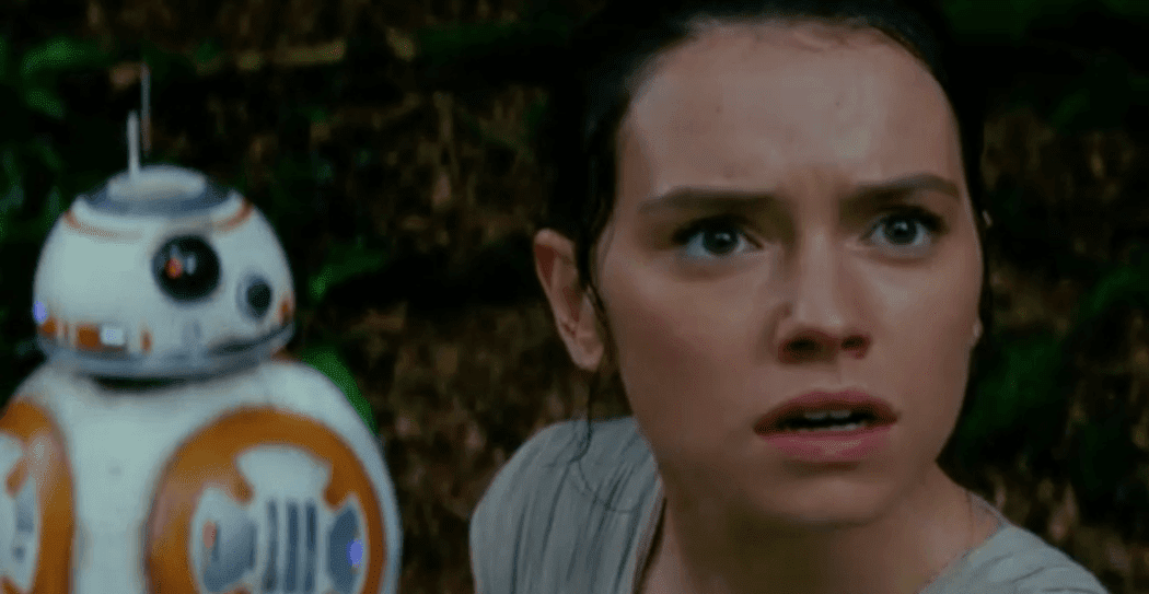 En la primera vemos a Rey y BB-8 en una especie de entorno forestal (muy posiblemente atendiendo a rumores, en el planeta del castillo de Maz Kanata) mirando hacia arriba con cara de temor (The First Order is coming).