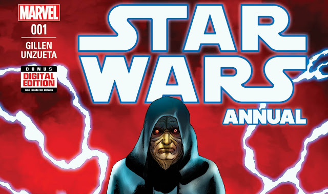 «En Star Wars Annual # 1 (40 páginas, $ 4.99), del escritor Kieron Gillen y el artista Ángel Unzueta, el espía rebelde Haarkon Dak ha estado encubierto en la burocracia imperial durante años – y puede ser la única oportunidad que los senadores simpatizantes de la Rebelion tienen para sobrevivir. En Darth Vader Annual # 1 (40 páginas, $ 4.99), del escritor de la serie Kieron Gillen y el artista Lenil Yu, encontrarás a Darth Vader en dirección al planeta Shu-Torin, donde el Señor Sith busca destruir un alzamiento contra el Imperio.»