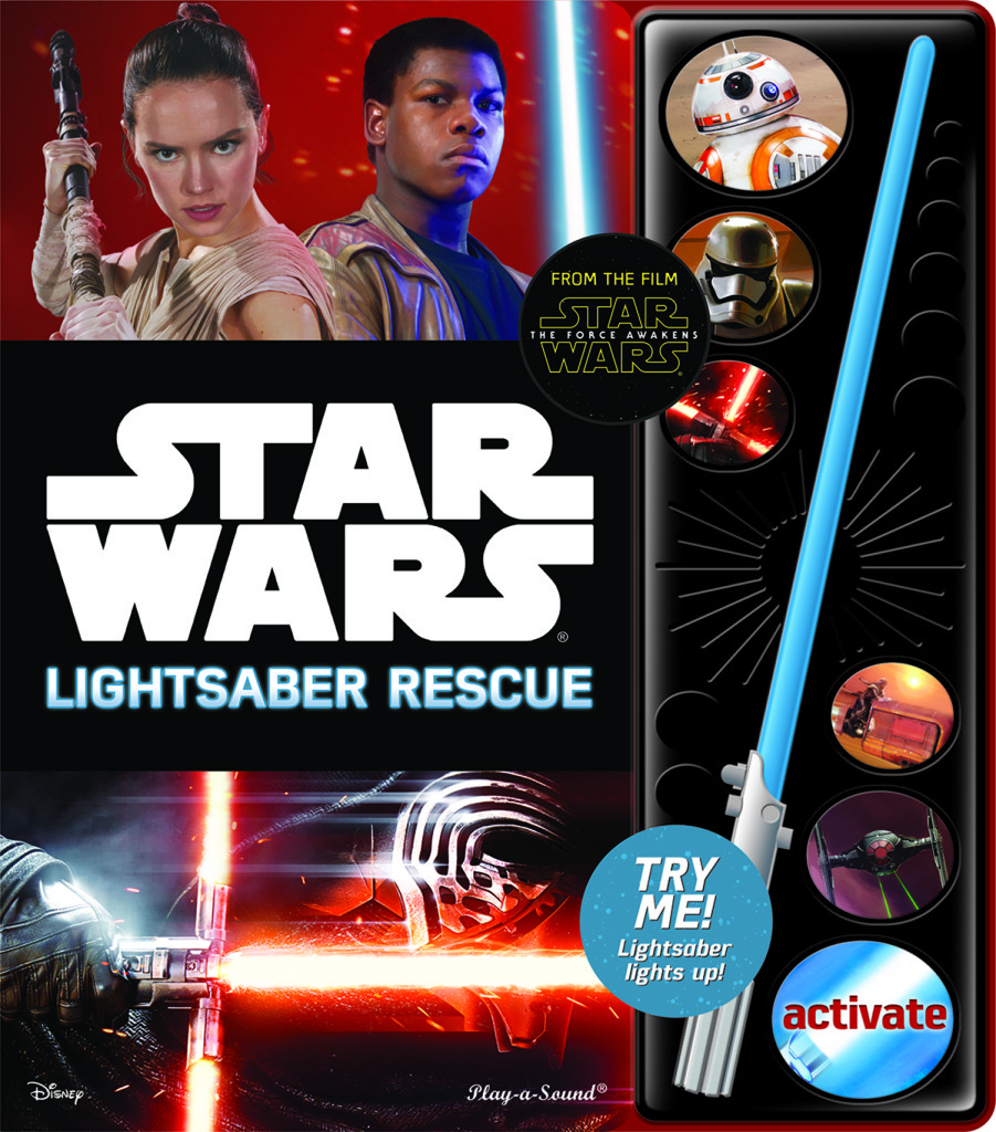 ¡La galaxia está en problemas otra vez! Activa tu sable de luz y ayuda uniéndote a la lucha! El cuento Lightsaber Rescue cuenta con un módulo de sable de luz no extraíble con seis sonidos para traer la historia de Star Wars: El Despertar de la Fuerza a la vida.