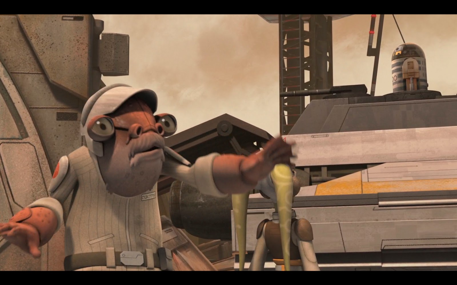 Me gustaría ver alguna referencia a como se hace la Rebelión con ellos y al porqué de las modificaciones que sufren. Por ejemplo, los Ala-B de El Retorno del Jedi, no son del mismo color que el de éste capítulo, y Quarrie hace un guiño a ese detalle.