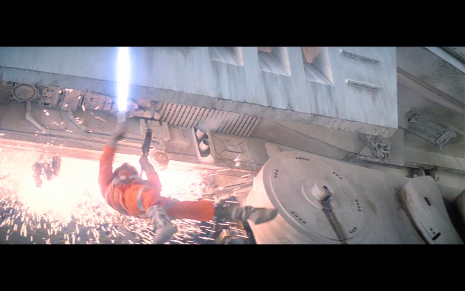 Luke Derribando un AT-AT en la batalla de Hoth.
