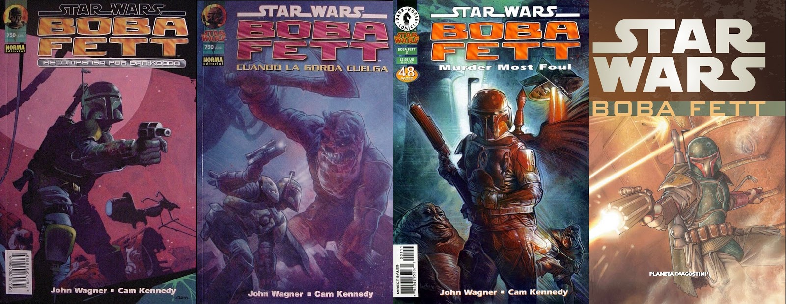| Poco antes de marcharse, a pesar de que ya no siguió en Imperio Oscuro, los fans todavía pudimos disfrutar del arte de Cam Kennedy en la trilogía de Boba Fett: Recompensa por Bar Kooda, Cuando la Gorda Cuelga y Asqueroso Asesinato. Los dos primeros números fueron publicados en España por Norma Editorial pero el tercero nunca llegó a ver la luz hasta hace poco, cuando Planeta DeAgostini lo publicó en el tomo integral de Boba Fett (a la derecha de la imagen). |