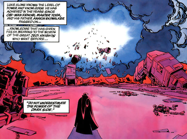 TOM: El paso de Luke al Lado Oscuro fue idea mía. Pero era algo inevitable desde las películas y que se había debatido durante años ¡teniendo en cuenta de quien es hijo!. De hecho, como quizás sabréis, Mark Hamill dijo que se lo propuso a George allá a mediados de los años 80.