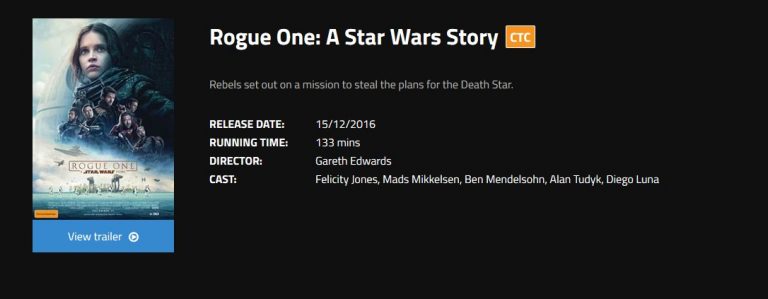 La web australiana, Event Cinemas podría haber revelado la duración de Rogue One.